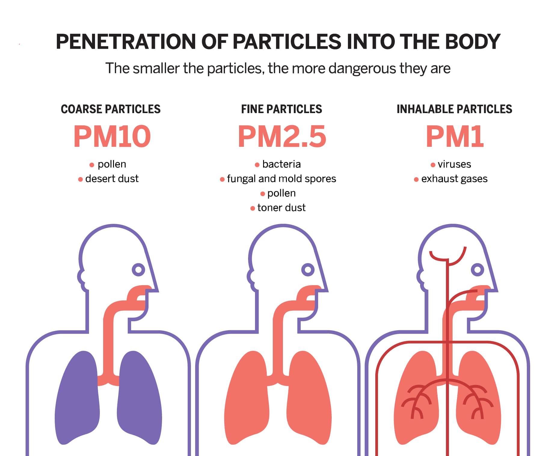 - PM2.5 enters bloodstream, causing inflammation, hypertension, heart attacks, strokes.