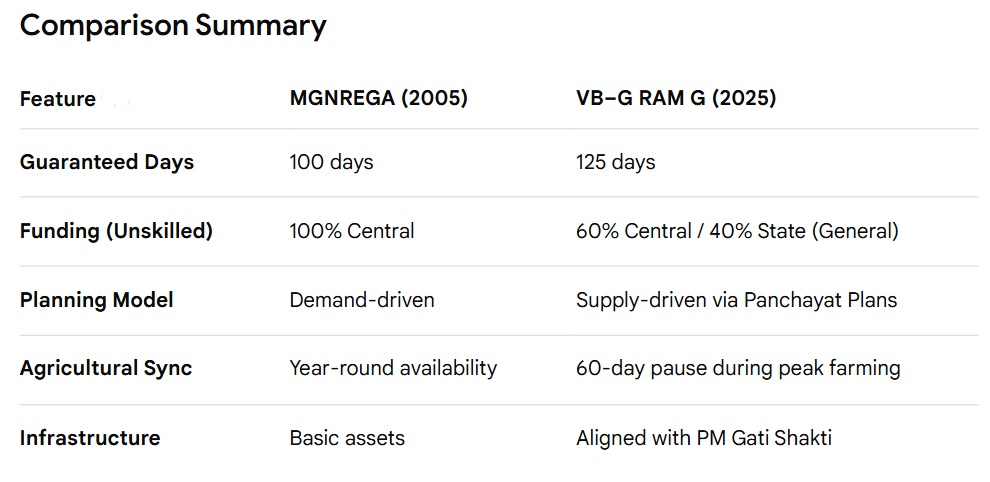 Key Changes from MGNREGA to VB–G RAM G
