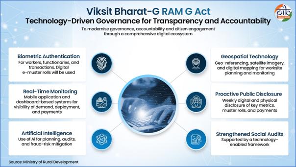 - Digital Governance: The new system mandates biometric authentication, geotagging, and artificial intelligence for audits and fraud risk mitigation.