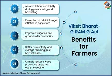 - In December 2025, the Government of India introduced a major overhaul of its rural employment policy, replacing the Mahatma Gandhi National Rural Employment Guarantee Act (MGNREGA) with a new statutory framework called Viksit Bharat – Guarantee for Rozgar and Ajeevika Mission (Gramin), or VB–G RAM G.