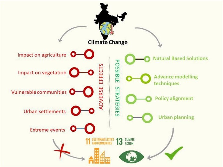 The periodic modification of Earth’s climate brought about due to the changes in the atmosphere as well as the interactions between the atmosphere and various other geological, chemical, biological and geographical factors within the Earth’s system is called Climate change.