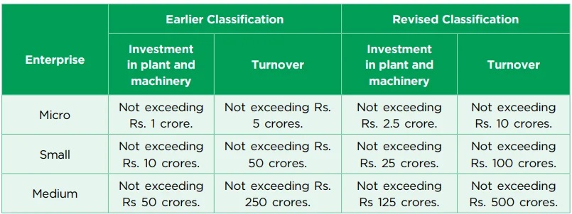 - Classification: The MSME sector is classified in accordance with the Micro, Small and Medium Enterprises Development (MSMED) Act, 2006, based on investment in plant and machinery and turnover, with a revised classification effective from 1st April, 2025.