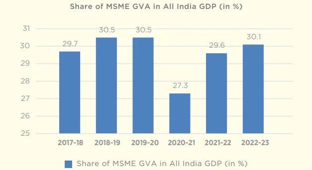 - GDP contribution: MSMEs contribute around 29–30% of India’s GDP, underscoring their role as growth engines.