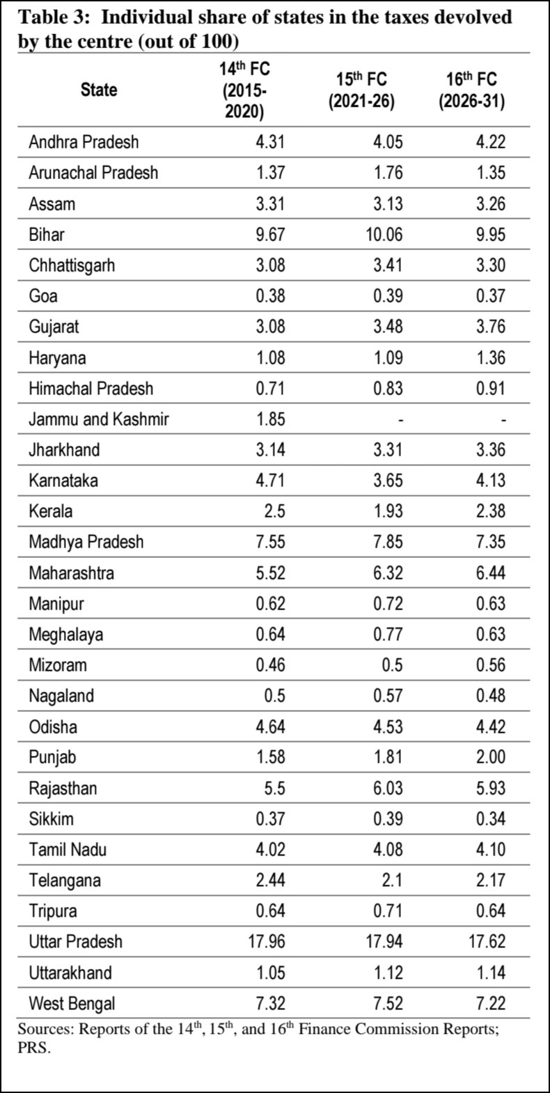 - Key Recommendation: The states’ share in the divisible pool of central taxes remains unchanged at 41%, consistent with the 15th Finance Commission.