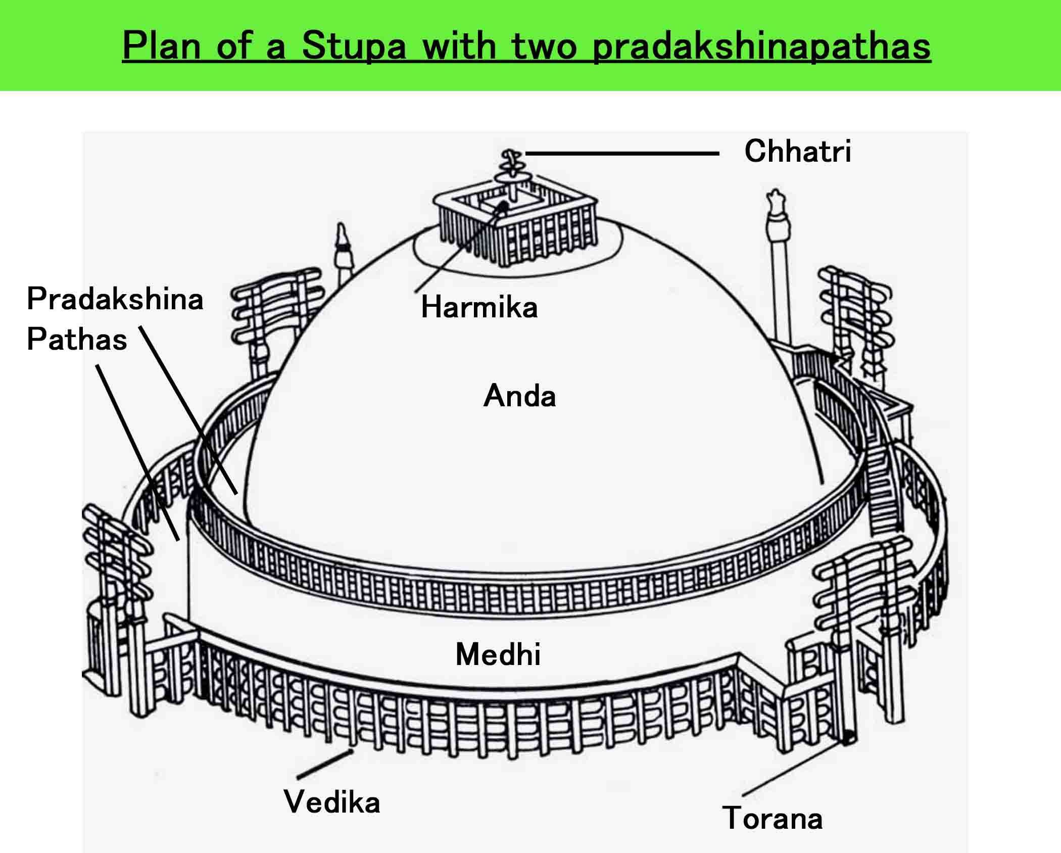 - Harmika: It is Crowned by an umbrella-like structure called Harmika.