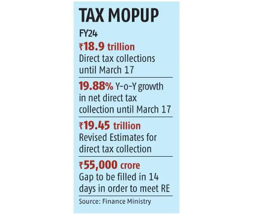Net direct tax collections surge 17.7% YoY to Rs 19.58 trillion in FY24.