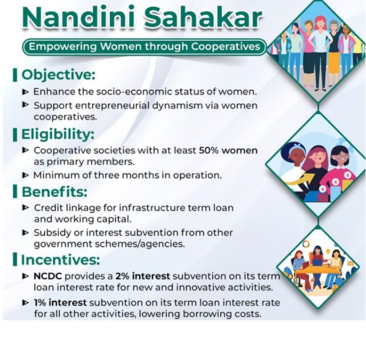 - The scheme aims to assist women cooperativesin undertaking business model-based activities under the purview of NCDC.