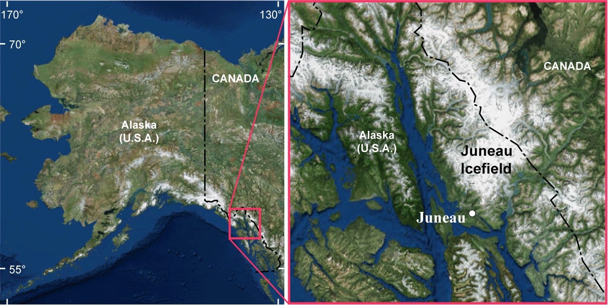 Alaska’s Juneau Icefield Location: Juneau Icefield spanning 1500-square-mile is the fifth largest icefield in North America and is located just north of Juneau, Alaska, continuing north through the border with British Columbia. Much of the icefield is contained within the Tongass National Forest Glaciers: The icefield is the birthing ground of 38 major glaciers, including Juneau’s Mendenhall Glacier and Taku Glacier. Training for Moon: NASA has chosen the icefield as one of the places on Earth that “captured the emotional sensations that one might encounter while walking on the moon.” Notable peaks: Major peaks on the Juneau Icefield are Devils Paw, Nelles Peak, Emperor Peak The Juneau Icefield Research Program: Since 1948, the Juneau Icefield Research Program has monitored glaciers of the Juneau Icefield. On the west side of the icefield, from 1946-2009, the terminus of the Mendenhall Glacier has retreated over 700 metres. |