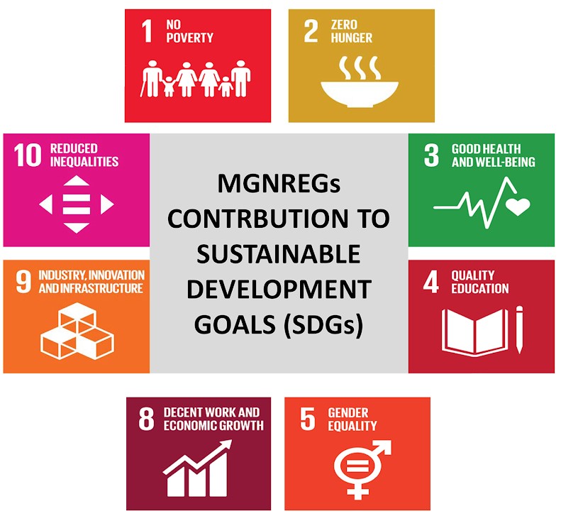 - Livelihood: It seeks to improve the livelihoods of the rural poor and create durable assets such as wells, ponds, roads, and canals.