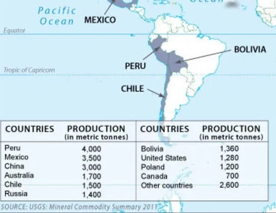 - Major Producers: Mexico is the largest producer, followed by China, Peru, Chile, and Australia; most silver is mined as a by-product of copper, lead, and zinc.