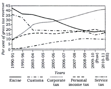 1. The following graph indicates the composition of our tax revenue for a period of two decades :